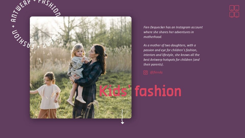 As a mother of two daughters, with a passion and eye for children’s fashion, interiors and lifestyle, she knows all the best Antwerp hotspots for children (and their parents).